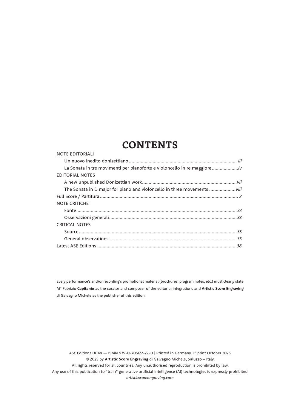 Donizetti, G. — Sonata for Pianoforte and Violoncello