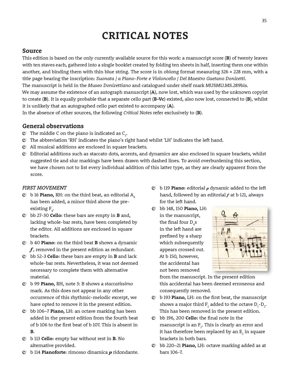 A thorough Editorial Notes section precedes the music, while detailed Critical Notes close the book. The edition (score 48 pp, part 12 pp) will be available in both printed and digital formats.