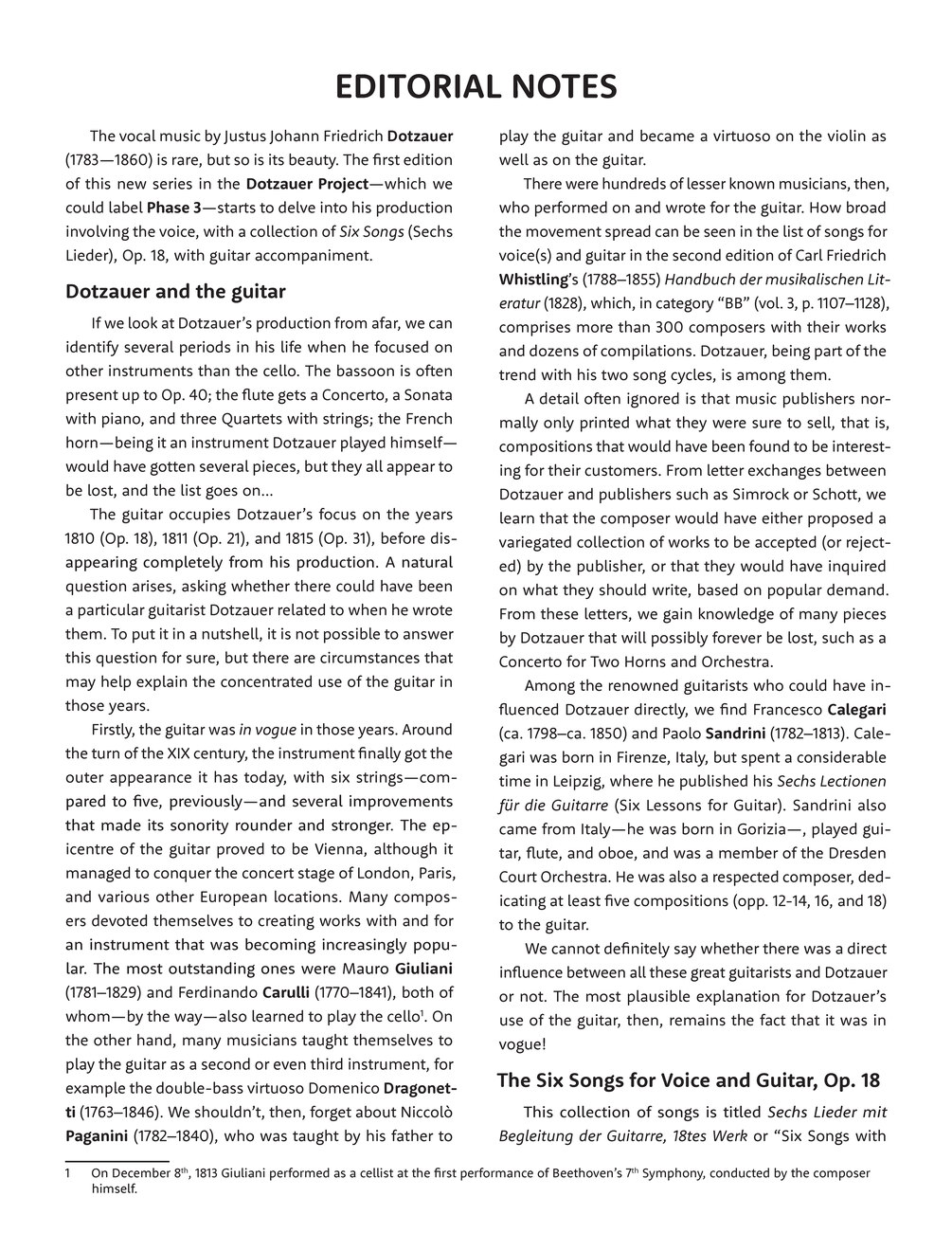 Dotzauer dedicated three works to the guitar, an instrument particularly in vogue at the beginning of the XIX century. The first one was this collection of Six Songs (Sechs Lieder) for the Voice with Guitar accompaniment.