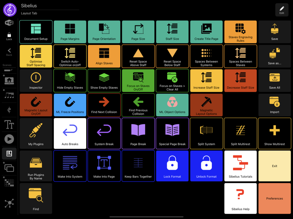 The best feature I am so proud of is the Keypad scene, where one can finally have all the Sibelius keypad layouts in one single screen! This is the only place where clicking on a button will also change the layout in Sibelius! It's pretty cool to behold!