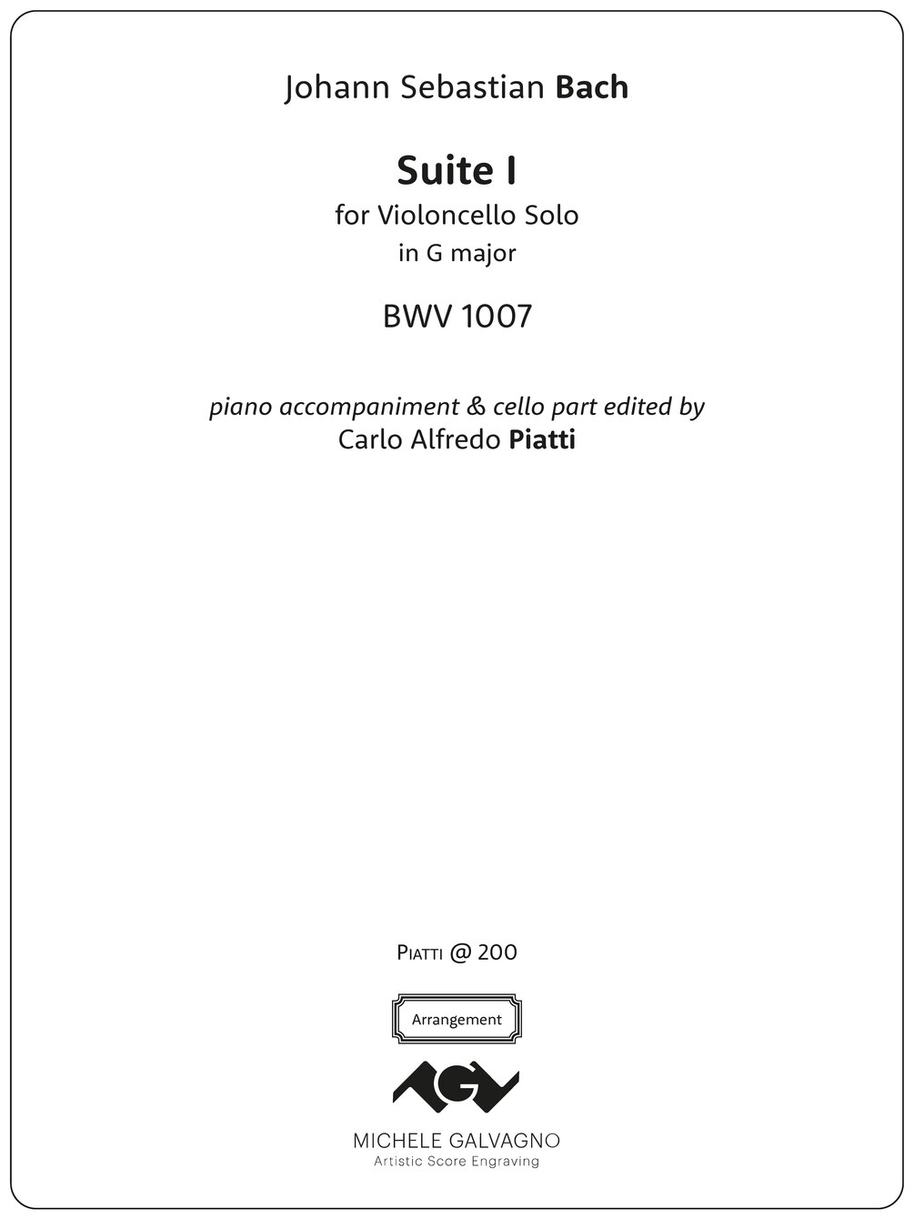 Bach, J. S. - Suite I for cello solo (piano accompaniment by Piatti)