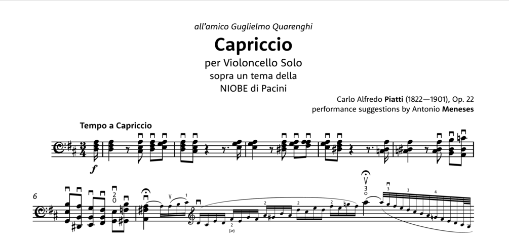 - Capriccio sopra un tema della Niobe di Pacini for cello solo (editorial contribution by M° Antonio Meneses)